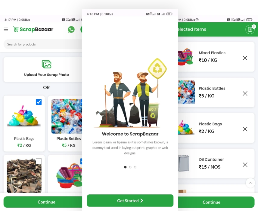 Now sell your scrap in just few steps Open This Website in Mobile for Demo Vadodara's Best ScrapBazaar Sell your scrap in just few steps Upload Your Scrap Photo OR Image Product Price Quantity Buy Plastic Bags ₹2KG Plastic Bags ₹2KG Plastic Bottles ₹5KG Plastic Bottles ₹5KG Iron Scrap ₹29KG Iron Scrap ₹29KG Mixed Plastics ₹10KG Mixed Plastics ₹10KG Carton Box ₹11KG Carton Box ₹11KG Oil Container ₹15NOS Oil Container ₹15NOS Notebooks ₹15KG Notebooks ₹15KG Newspaper ₹14KG Newspaper ₹14KG